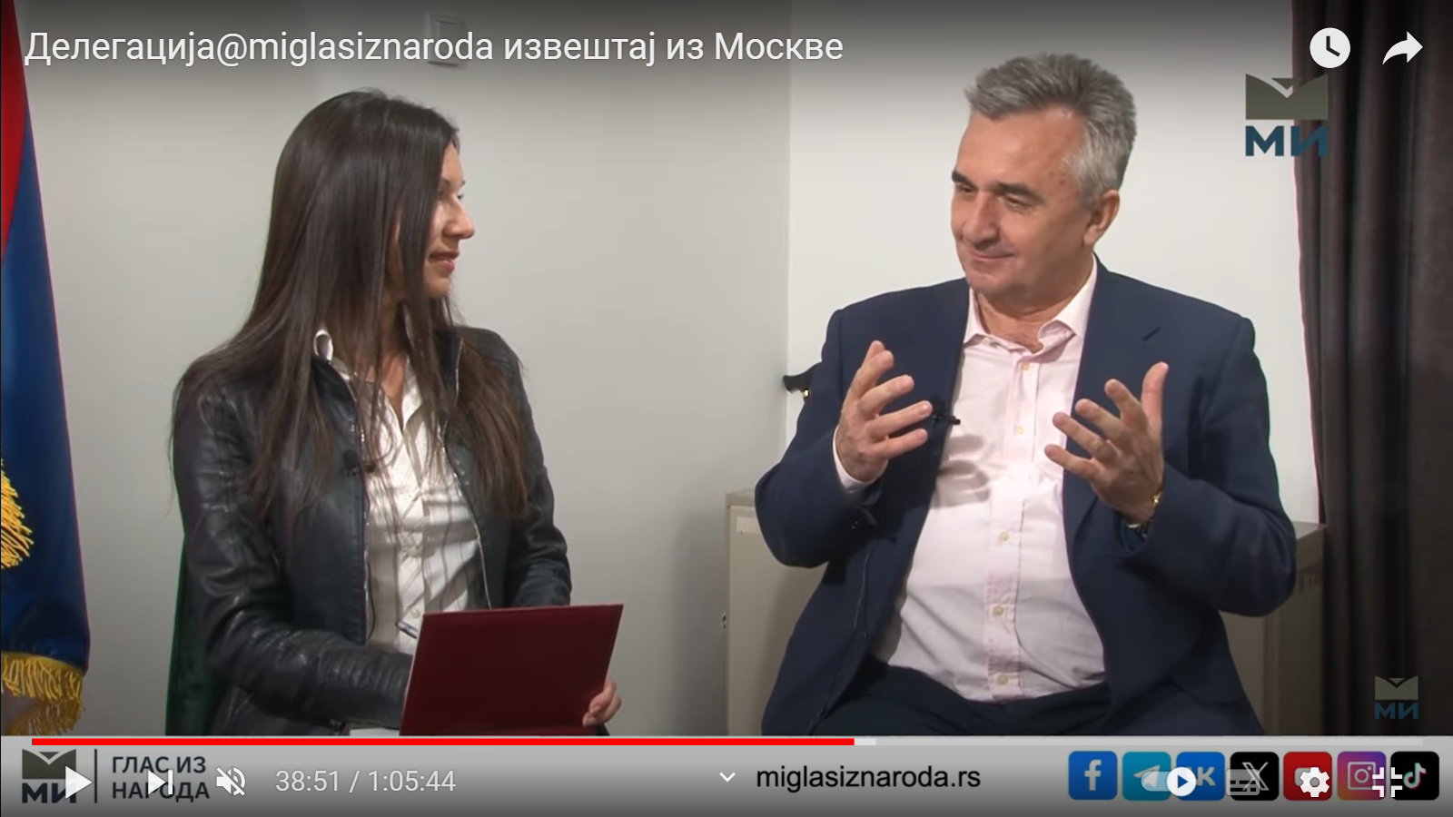 Они цене наш патриотизам и наше гесло да ми нисмо опозиција држави већ власти, да укацујемо на оно што није добро на уљудан начин, да предлажемо и боримо се за оно што је добро, у интересу нашег народа, без обзира која идеологија стајала иза тога. То они изузетно цене. Тако су се поставили и њихови председнички кандидати. Када је завршен изборни процес, председник Путин састао се за истим столом са осталим председничким кандидатима. Лепо су попричали, договорили се, иде сарадња даље а не да се шири мржња као што овде раде, или својом, или туђом вољом. Русија стоји уз Србију од врха, светских организација, до спорта. Управо на предлог Русије је предложена седница поводом 25. годишњице НАТО агресије над Србијом. Која би то друга земља тражила?