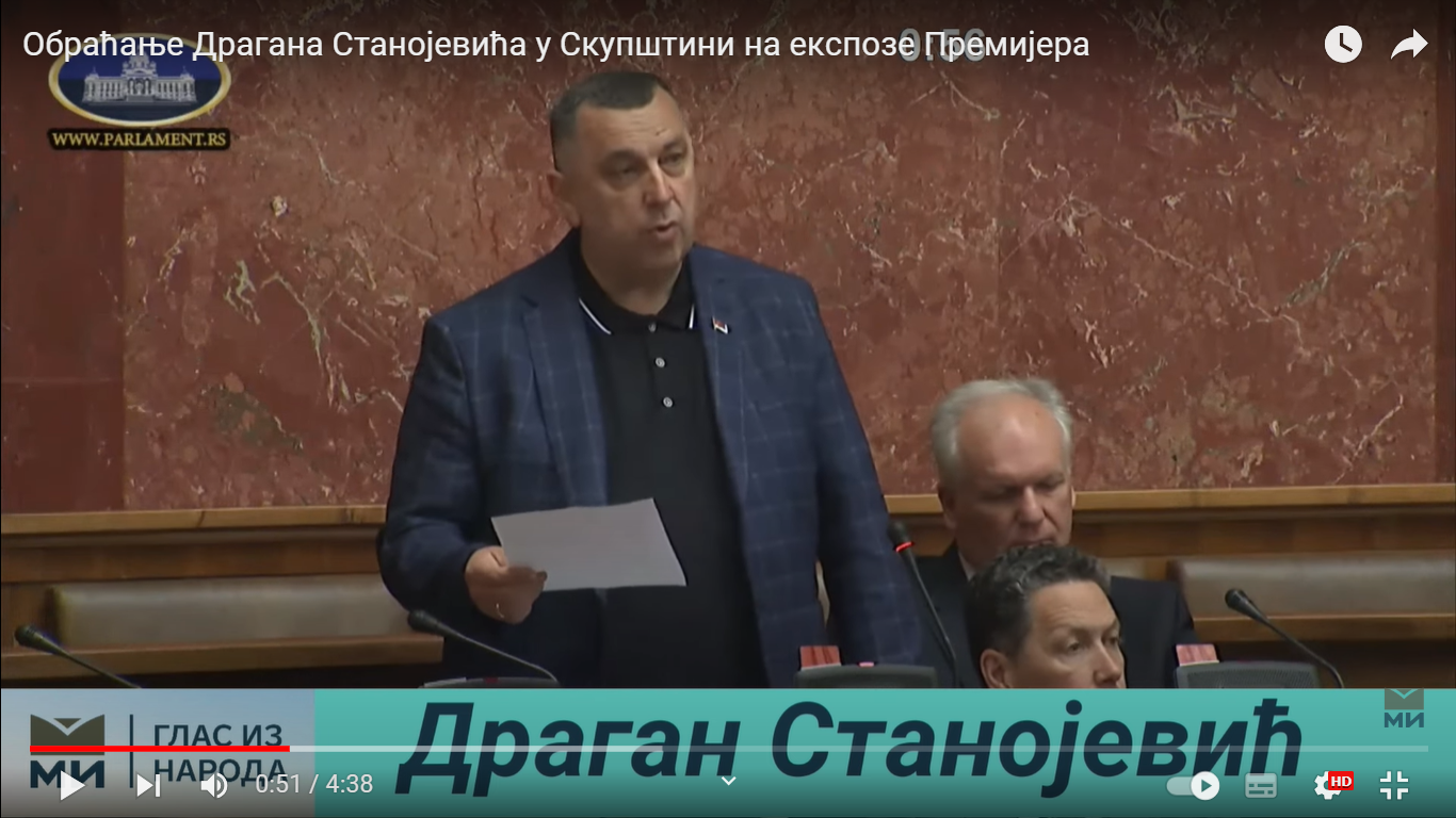 Обраћање Драгана Станојевића у Скупштини